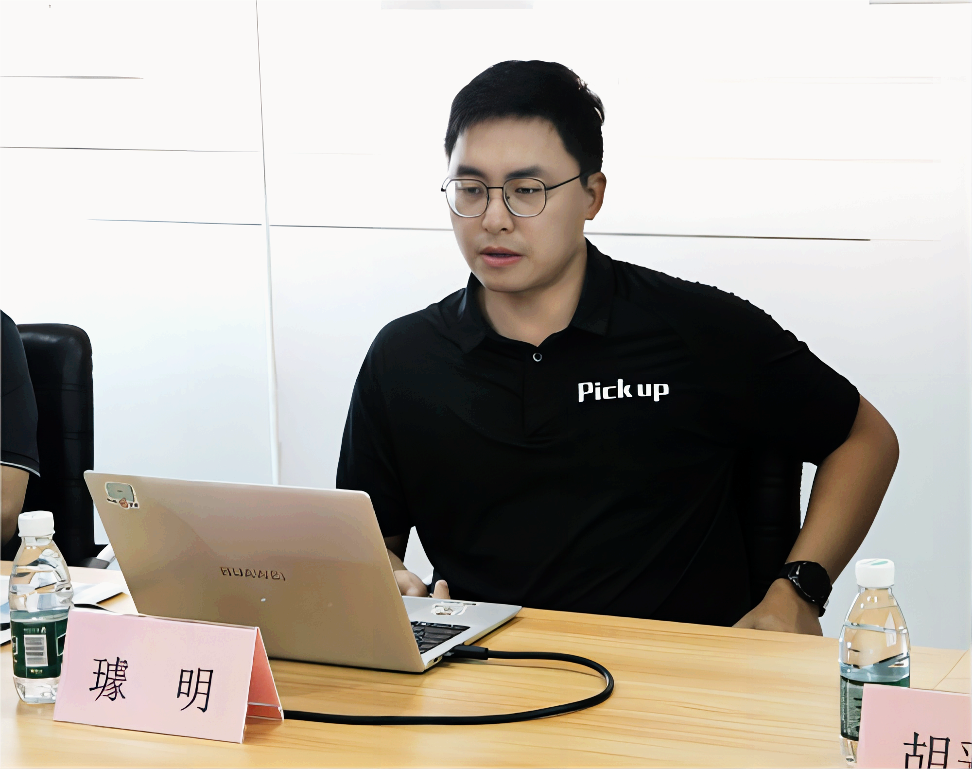 蓝海工业总经理助理璩明为考察团展示创新成果